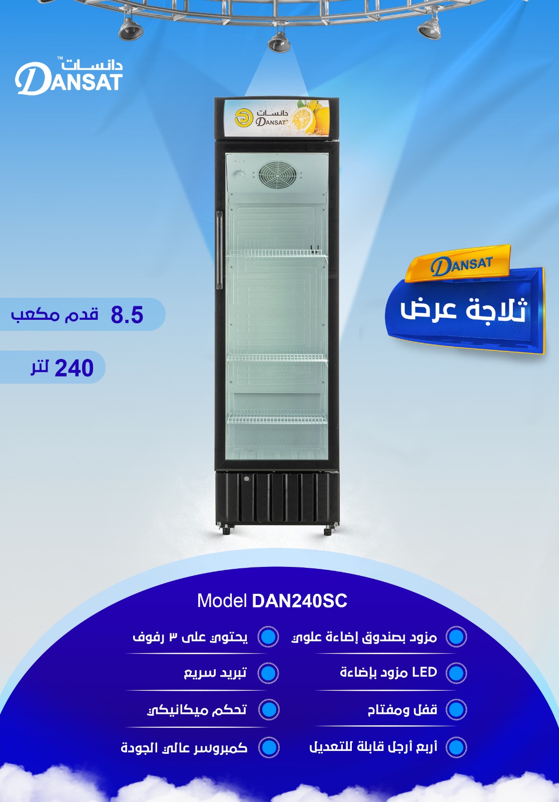 ثلاجة دان عرض 8.5 قدم DAN240SC