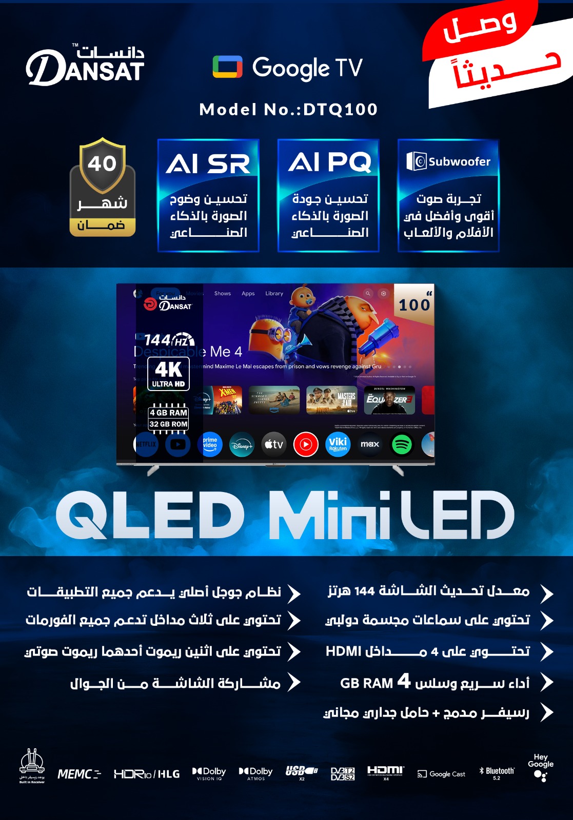 شاشة دان جوجل كيو ليد ميني ليد طويق DTQ100U144HZ MINILED